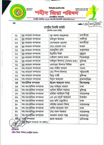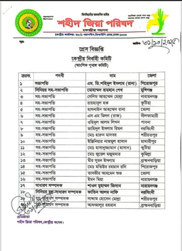শহিদ জিয়া পরিশোদ কেন্দ্রীয় কমিটি অনুমোদন।